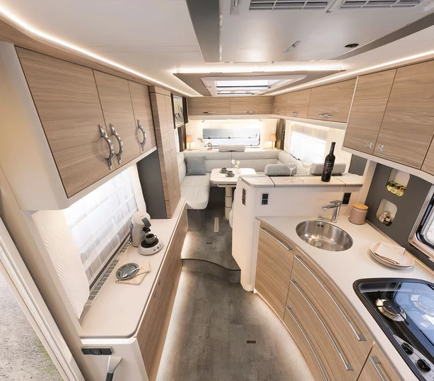 Im Alpa A 6820-2 überzeugt nicht nur das große Ganze, sondern auch die Liebe zum Detail: vom Multifunktionslenkrad über eine vollautomatische Klimaanlage im Fahrerhaus bis hin zu raffinierten Schranklösungen und modernen LED-Spots.